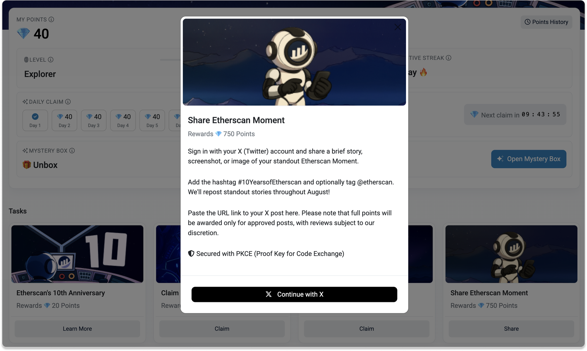 - Share an Etherscan Moment: Post a memorable Etherscan moment on X to earn points.