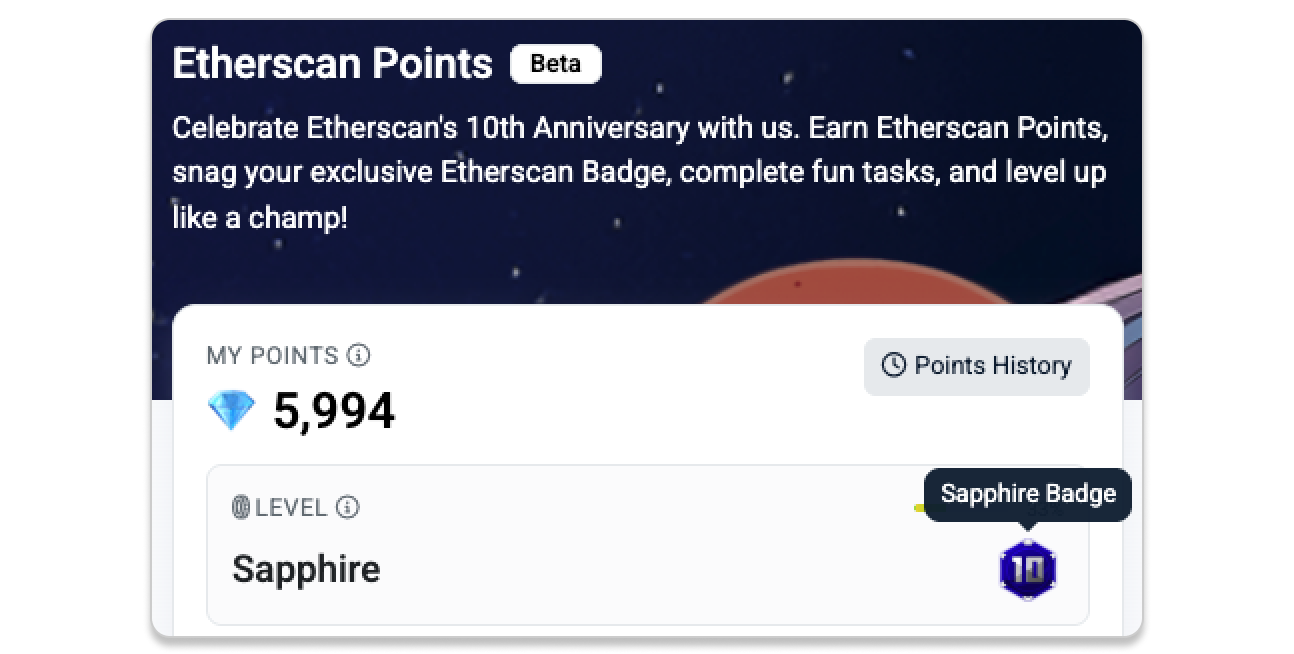 To mark the occasion, we’re excited to announce Etherscan Points — a simple, campaign-based way to earn and redeem perks on Etherscan. Not a token airdrop, just our way of saying thank you!