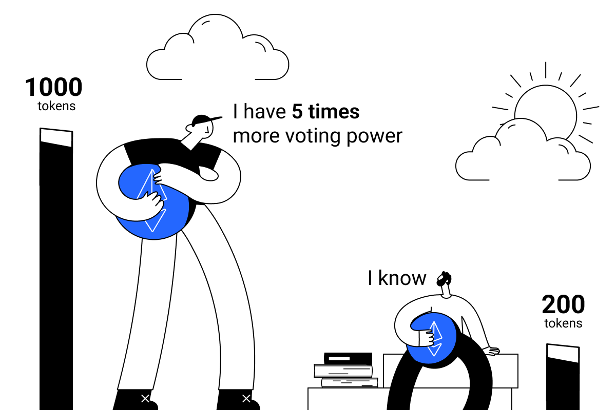 The key to the process is determined by the amount of the staked DAO token. Those who stake their token will get voting rights, and the more they stake, the larger the voting weight. For example, if person A stakes 1000 tokens and person B stakes 200 tokens, person A will have 5 times more voting power than person B.