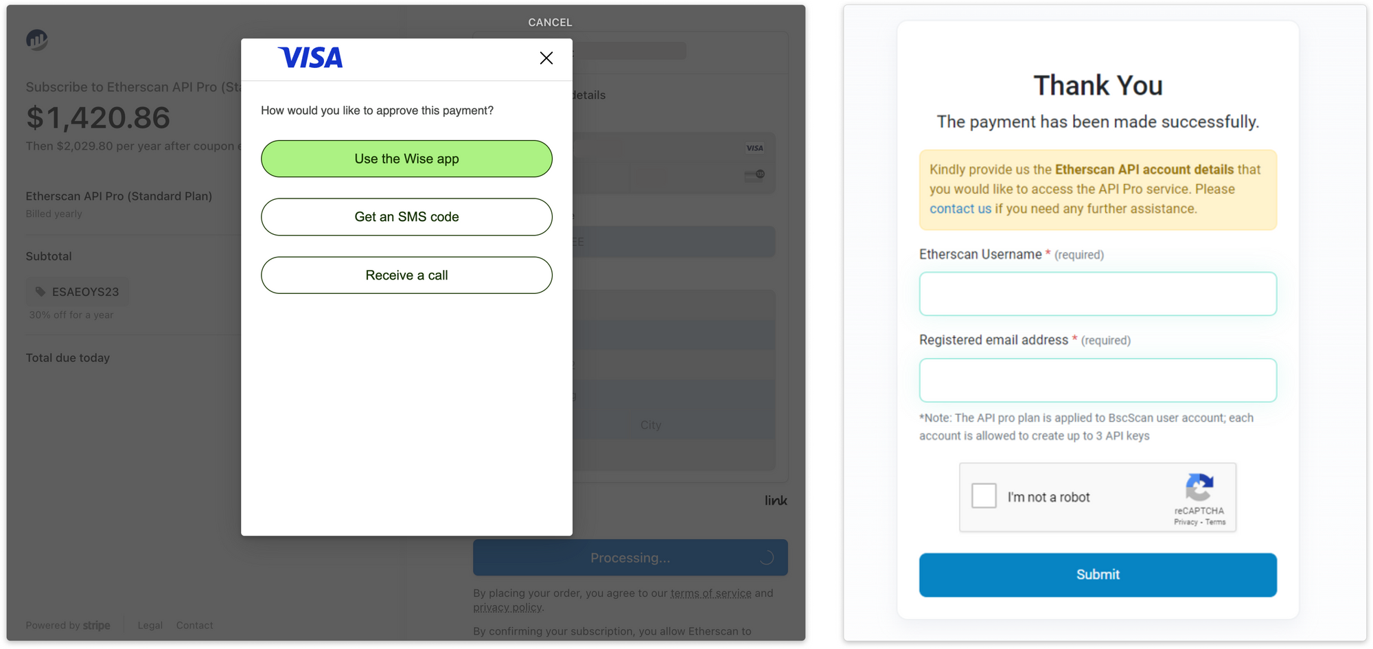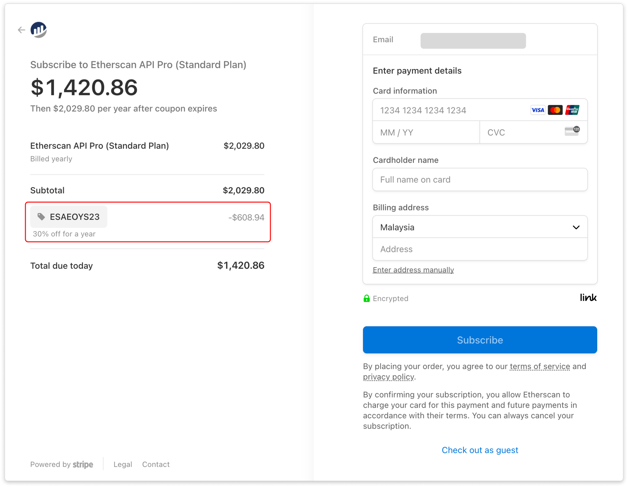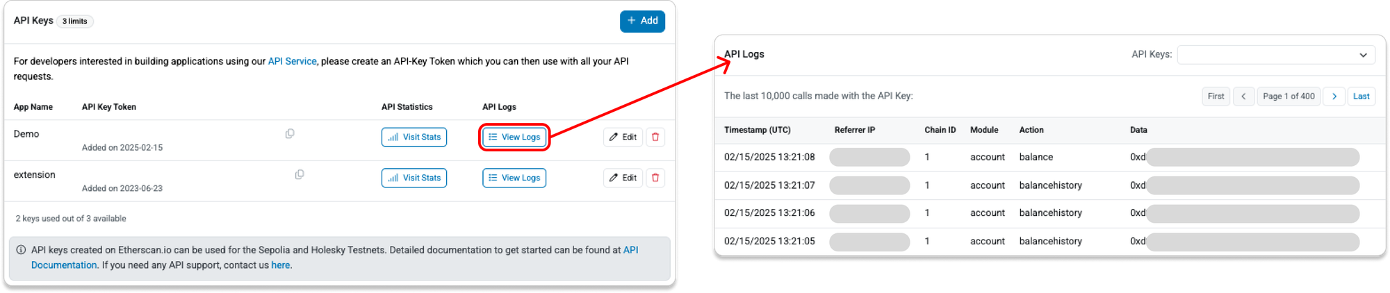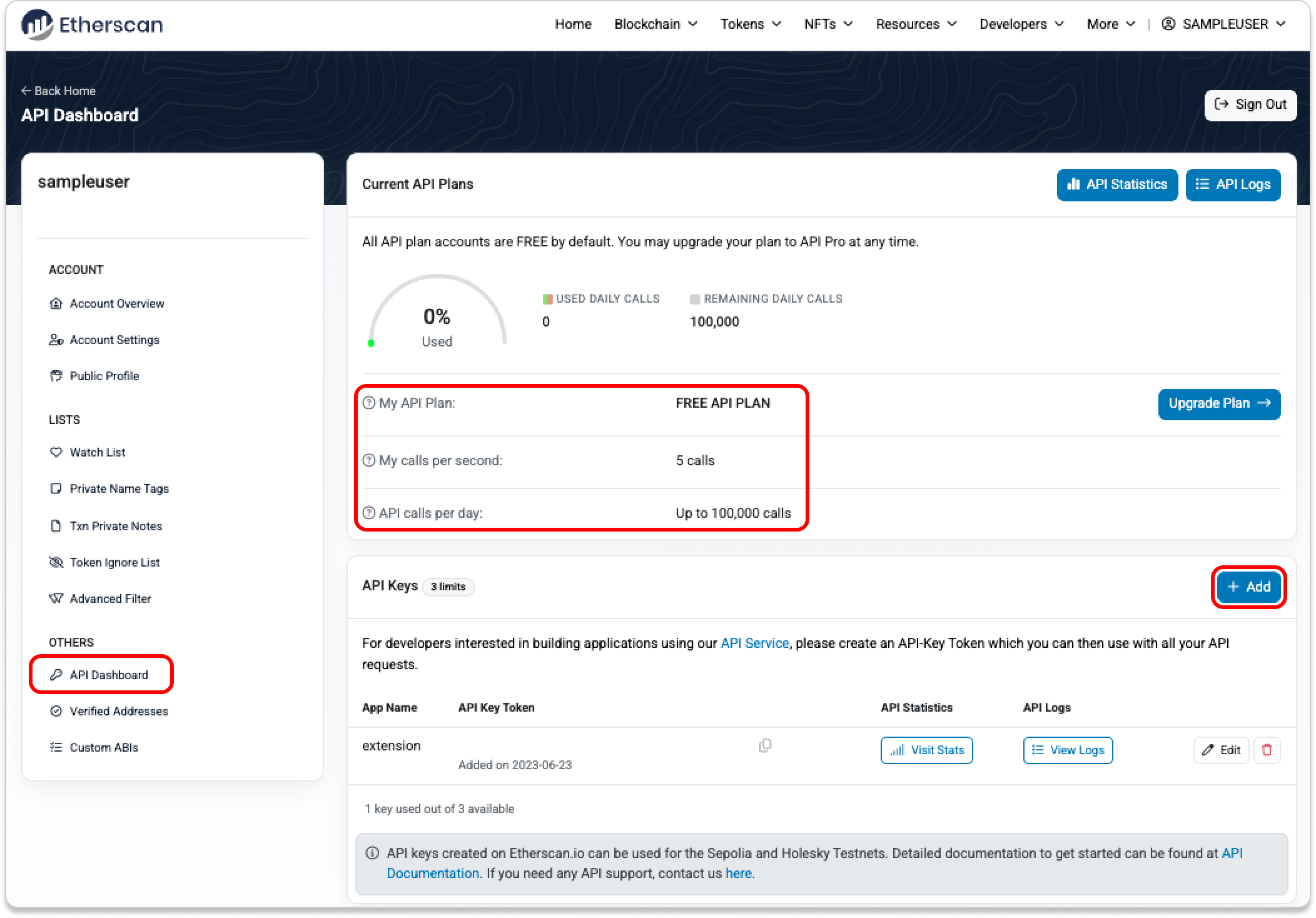 - Simply click on "Upgrade Plan ->" or head to etherscan.io/apis and choose a plan that suits your needs (an annual subscription saves you more!).