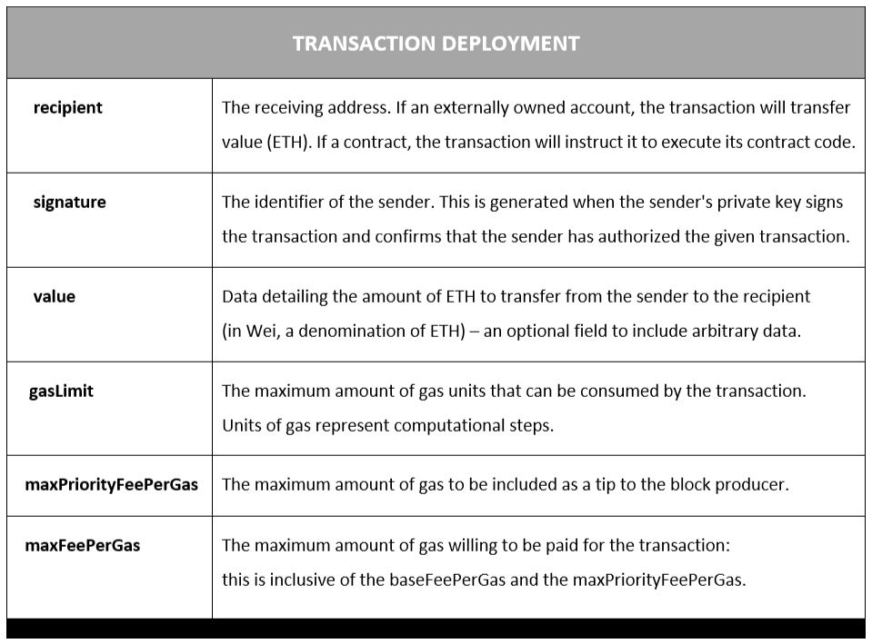 A transaction sent to Ethereum’s transaction pool must contain the following details to be processed: