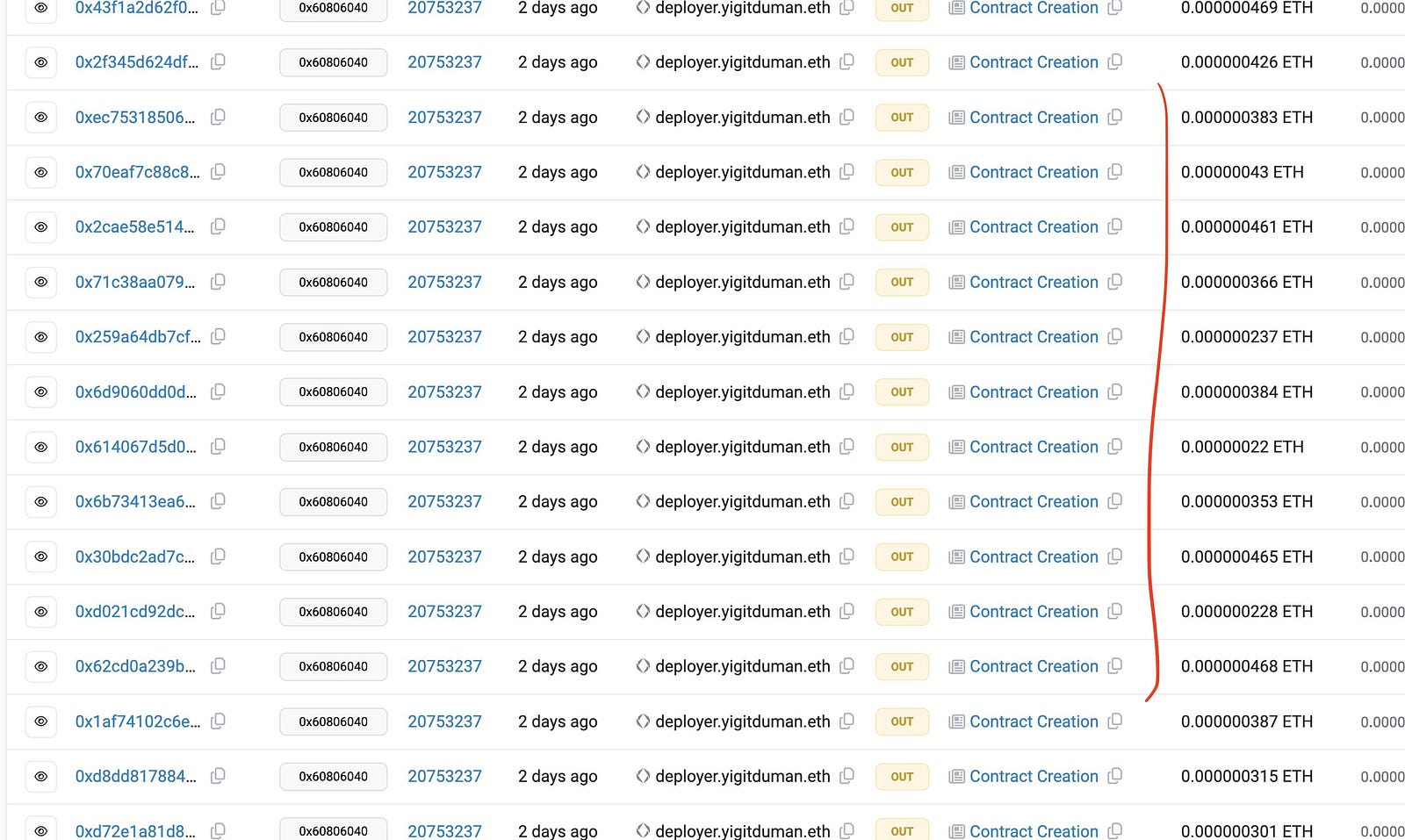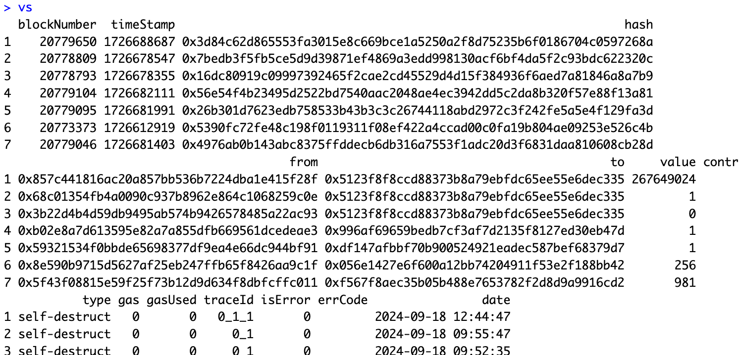 Anyway, I needed to take several steps before making this happen. (I share lots of detail in this elaborate thread here.) First, I assembled some test contracts replicating Yigit’s contract environment to make sure it would work. Also key was using Etherscan’s API to scan for both the addresses and the balances of RoP’s contracts. By detecting which of the RoP contracts had “internal transactions” (those selfdestruct events) I could tell that several had been sent some wei: