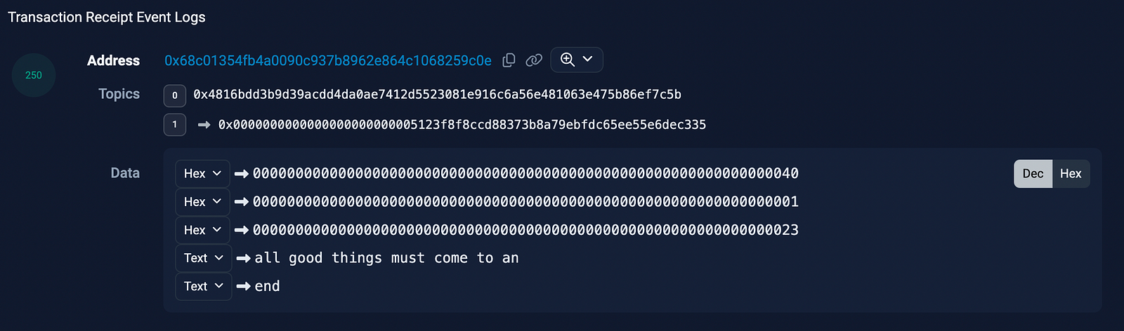 I’ll confess being quite proud of this little endeavor. Most of my time was spent choosing a viable target in the bytes expressed by RoP’s balances — like a viable genetic mutation introduced in some long stretch of DNA.