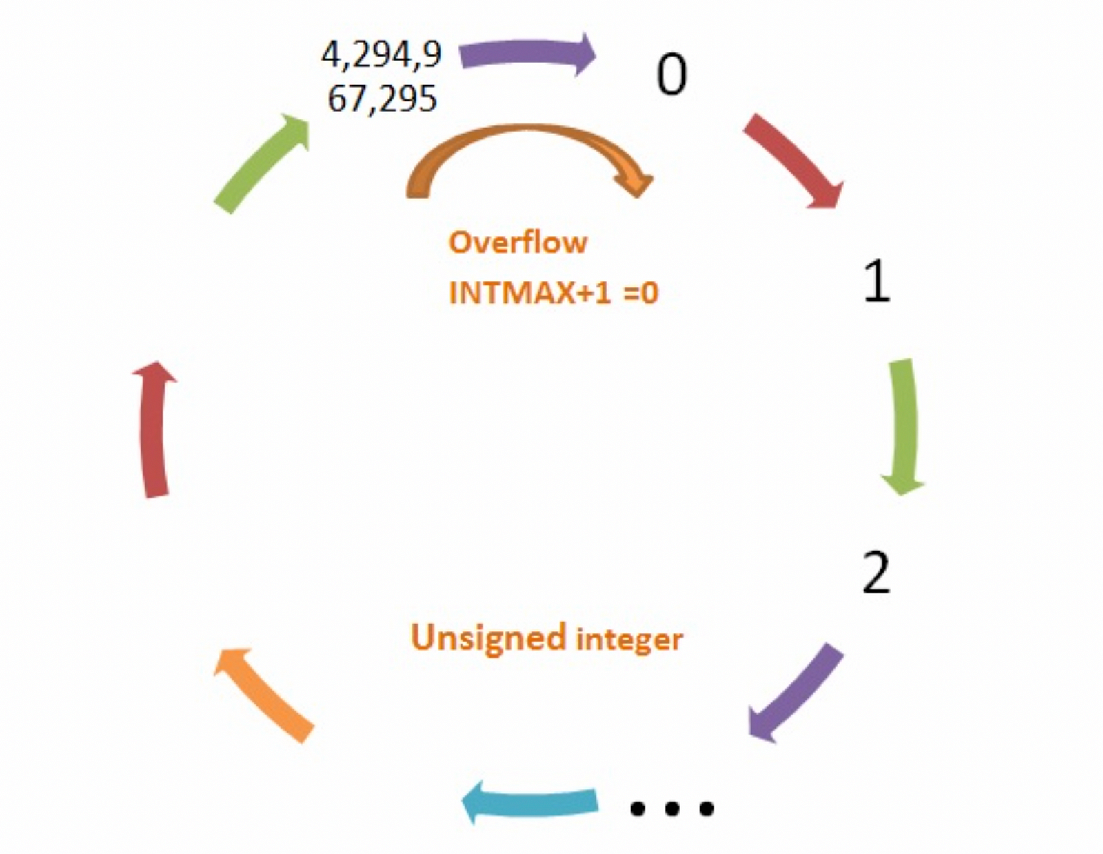 Integer typing is subject to another very well-known vulnerability, often used as an attack surface too: I can overflow this integer type and force Yigit’s rendering contracts to “think” it’s back to the same original number. The idea can be visualized like this: