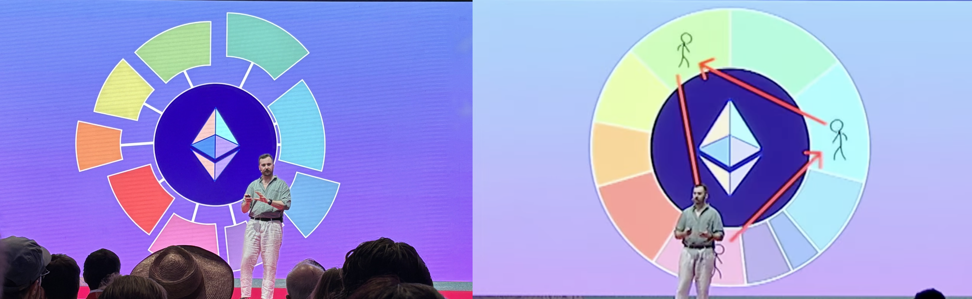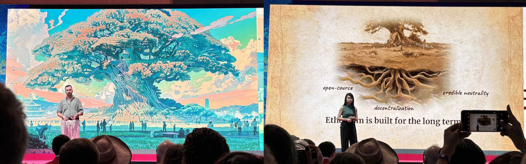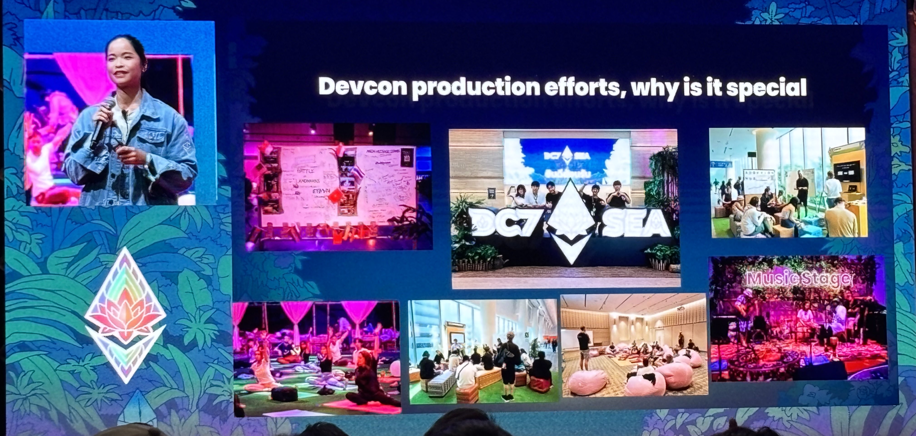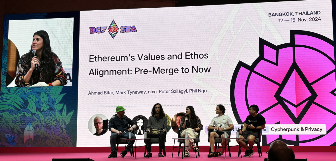 Devcon started with an opening performance and address by Skylar, the Devcon team lead, celebrating the vibrant SEA community and its contributions to Ethereum’s global ecosystem. This was followed by a 2024 recap by Josh Stark from the Ethereum Foundation leadership and a philosophical reflection on redefining boundaries in the Infinite Garden by Aya Miyaguchi, the EF’s Executive Director. Both Josh and Aya, alongside Skylar, emphasized that Ethereum’s success today is deeply rooted in long-term thinking.