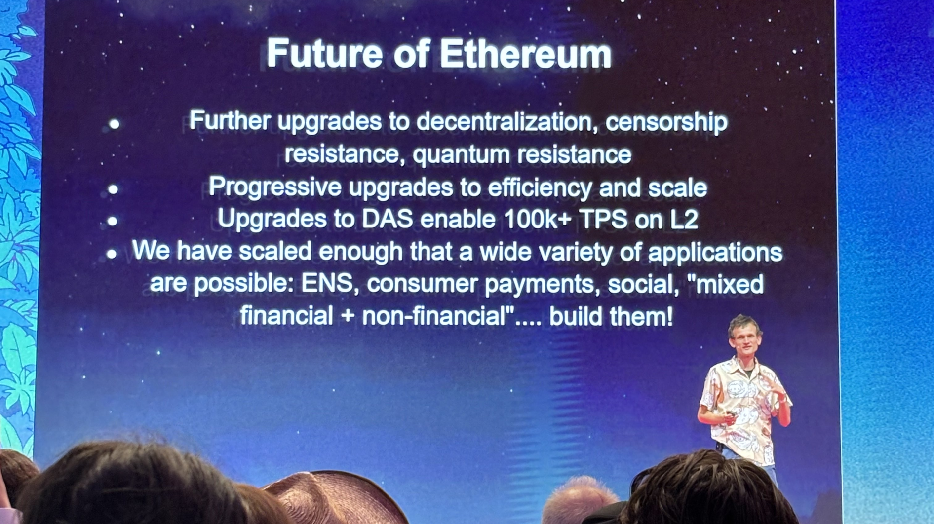 Vitalik’s customary Ethereum in 30 Minutes talk reinforced this ethos, describing Ethereum as a "world computer" that evolves cautiously and deliberately. It’s not a system that can be whimsically altered—it won’t suddenly "wake up on a Tuesday" with new management making arbitrary decisions to delete applications or overhaul its model without notice.