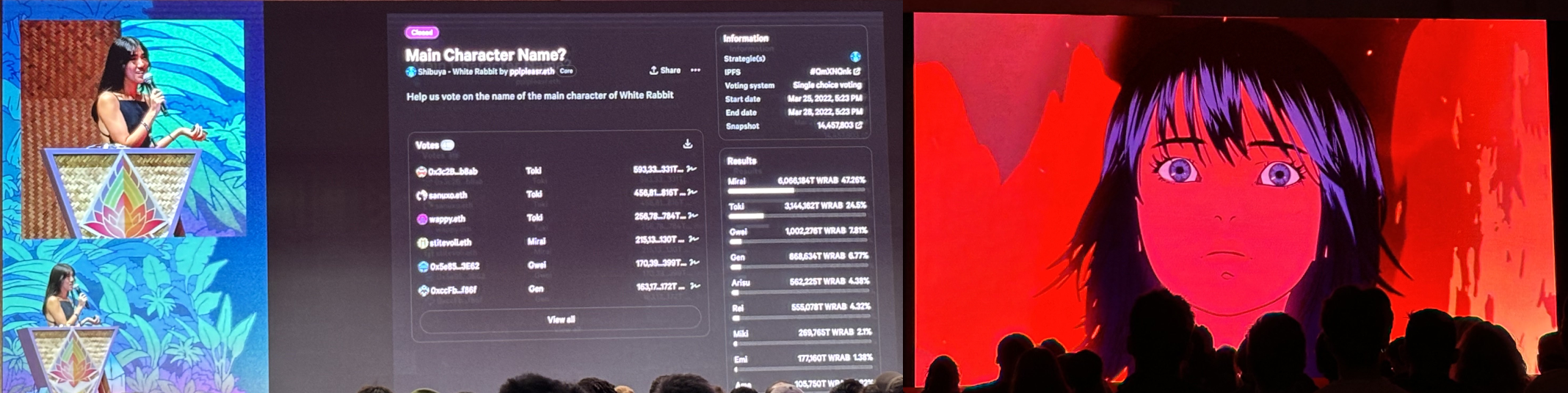 In the midst of all that fun, Devcon attendees also had the chance to watch the first crowdfunded anime on Ethereum. White Rabbit was an ongoing interactive film where, with each chapter, fans could cast their votes and unlock new scenes, bringing an extra layer of engagement to the anime production.