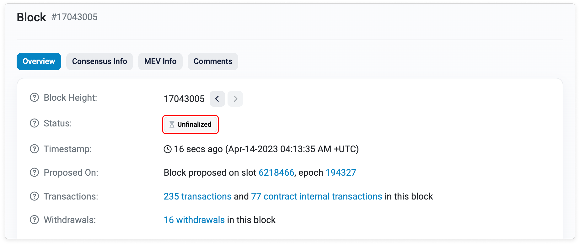 Unfinalized status refers to the most recent blocks that are yet to be built and attested by the validators. These blocks have the possibility to be reorganized.