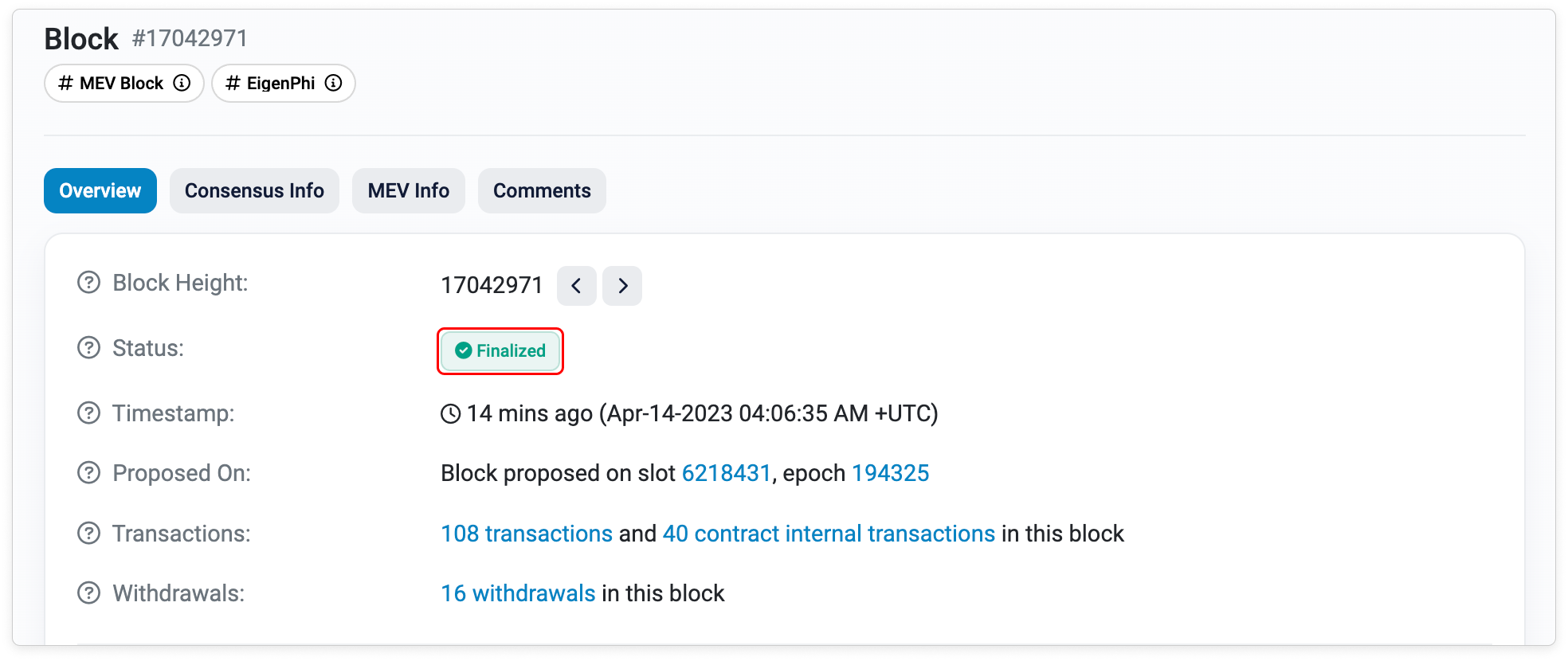 For each epoch, the chain will randomize the validators committee–also ensuring that the validators are different for each Epoch session. The validators will attest to the validity of the blocks before being added to the blockchain. The status of the block or also known as commitment levels can be seen on the block page on Etherscan. The unfinalized, safe and finalized status are determined based on epochs.