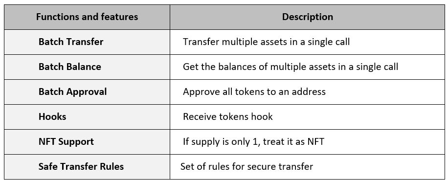 Once verified for the blockchain, a contract cannot be changed. When deployed, a contract (and the crypto assets it represents) is added to the network. Given the nature of how it is operates, new functionality is possible with this ERC design. Plus, its ability to transfer multiple tokens at once helps with transaction cost savings. Trading (escrow or atomic swaps) of multiple tokens can be built on top of this Ethereum standard. Also, it omits the need to “approve” individual token contracts separately.