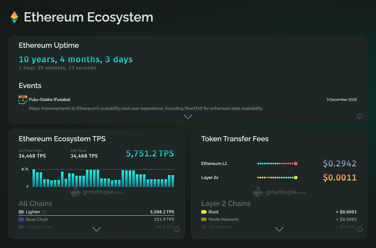 So Fusaka will have measurable impact on L2 throughput. As the weeks go by, we may see this impact through on-chain statistics. Recently, the Ethereum ecosystem in its entirety was estimated to have surpassed the mark of 31,000 transactions per second. These changes to the blob infrastructure seem likely to amplify this further.