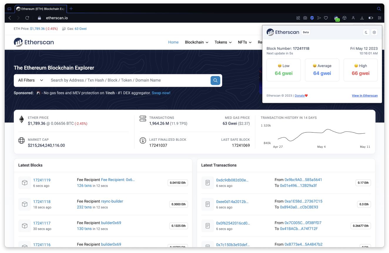 The Etherscan Browser Extension is a handy tool for Ethereum users. It provides real-time gas price updates and a simple search for any onchain items with a single click.