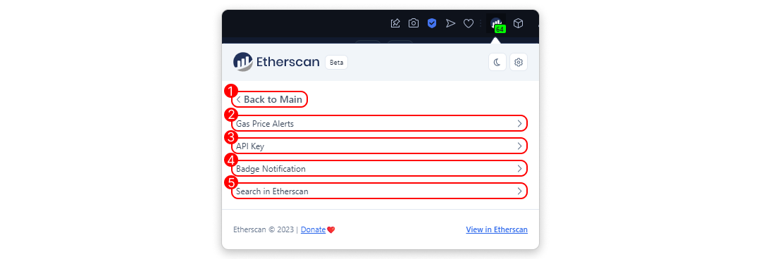- Badge Notification: This displays the latest average gas price at all times. This helps you make transactions easily without having to open a new gas tracker page to check for the latest gas prices.