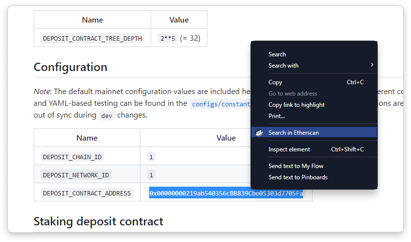 For example, when browsing smart contract codes on Github, simply highlight the smart contract address, right click, and select "Search in Etherscan". This will bring you to the smart contract address page on Etherscan.