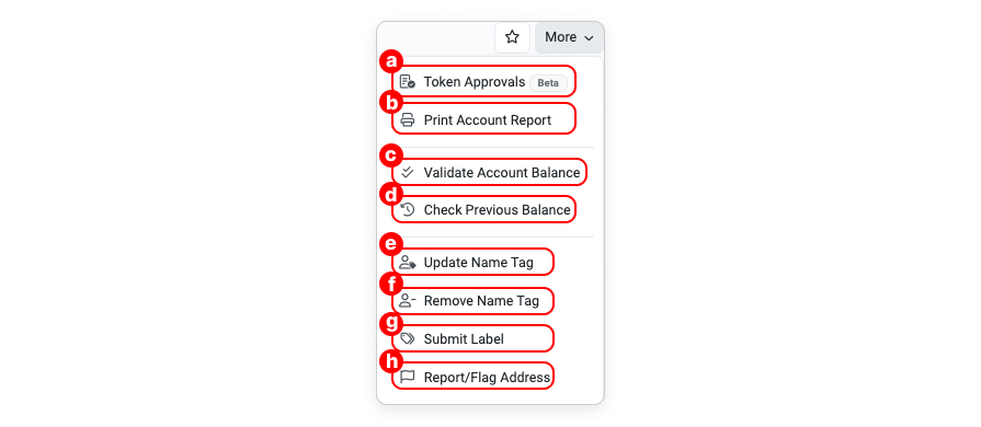 h. Report/Flag Address: If you think that the address is hacked, performs suspicious activity, belongs to a scam/spam project, etc., click here to submit a report to us.