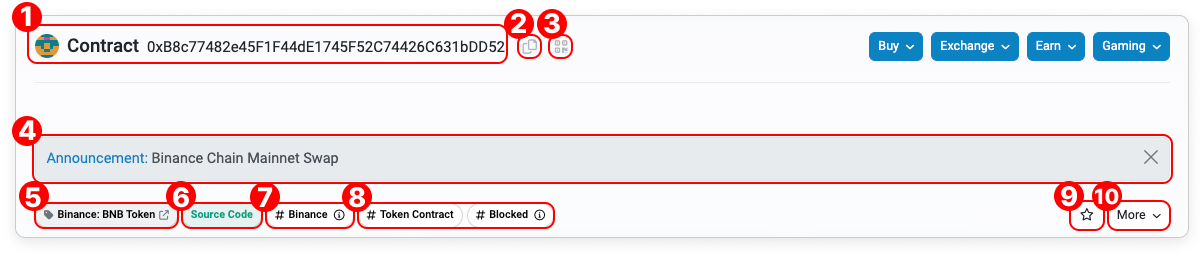 - Contract: This shows the contract address that you are currently viewing.