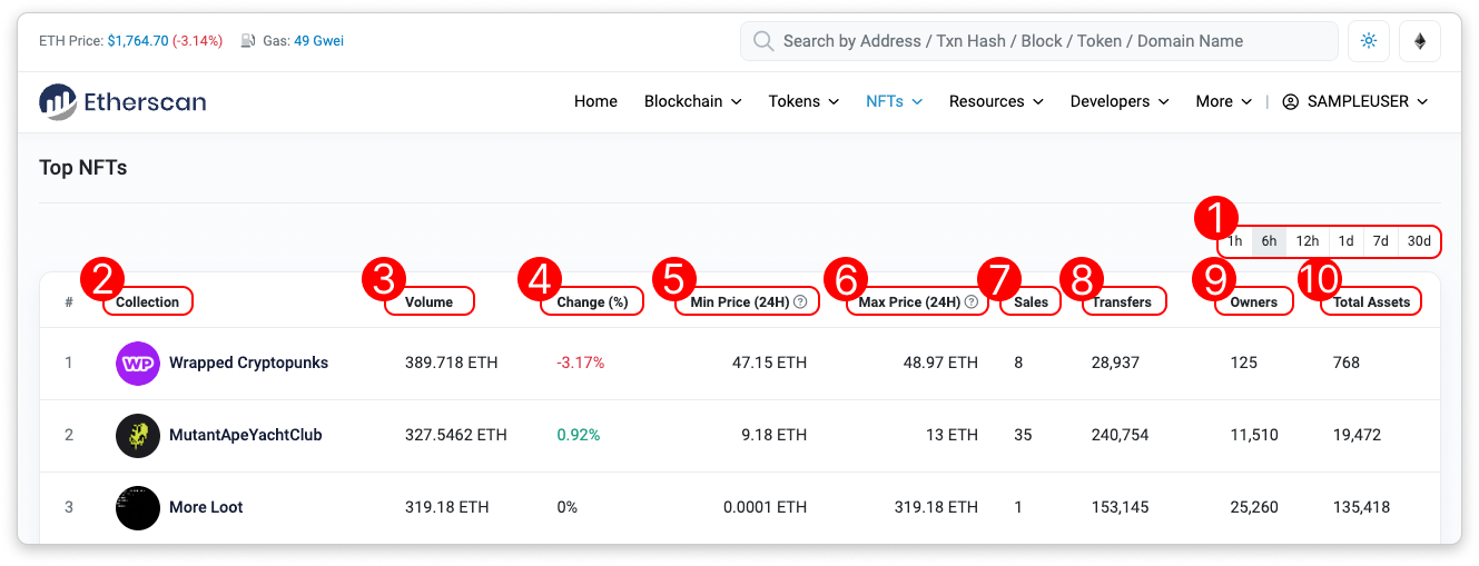 - Timeframe: Choose to view top NFTs within a specified timeframe.