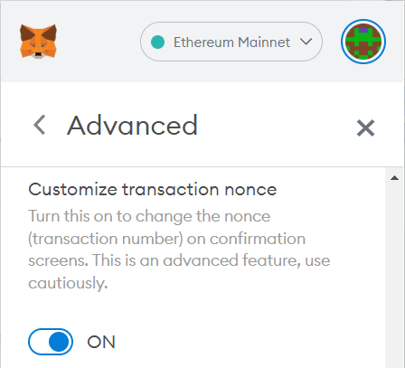 - Access your MetaMask extension, click on the round icon at the top right corner and click on Settings. Now, enable the Customize transaction nonce and Advance gas controls options.