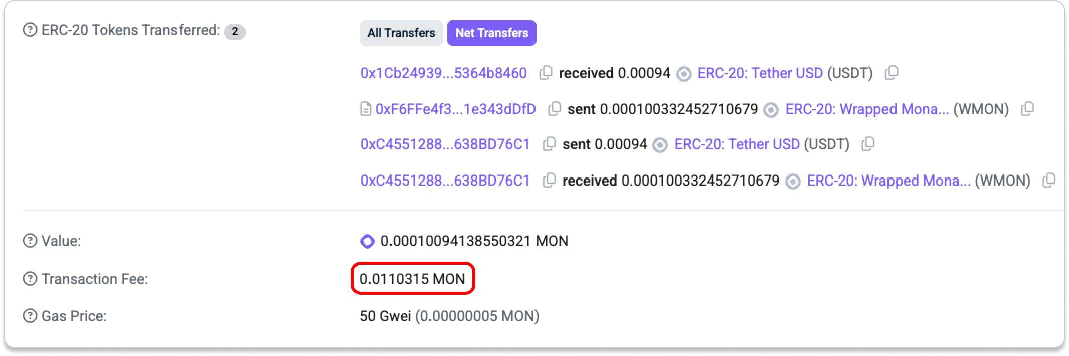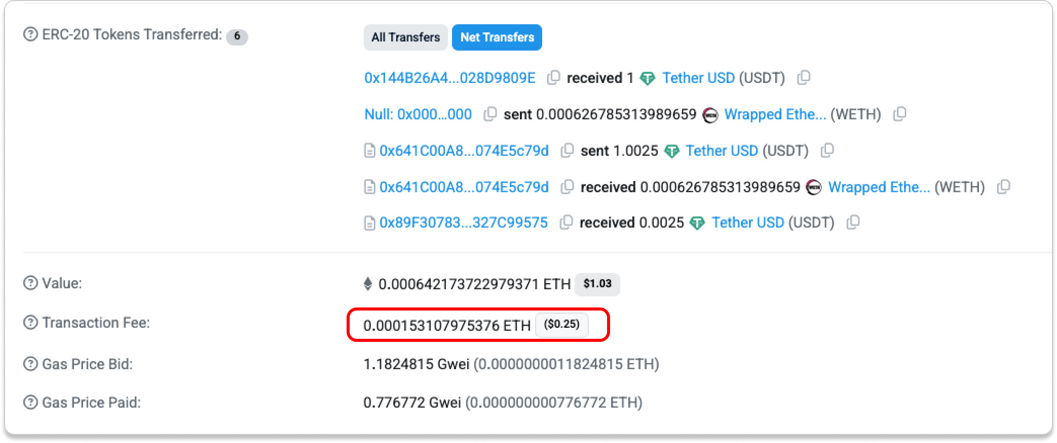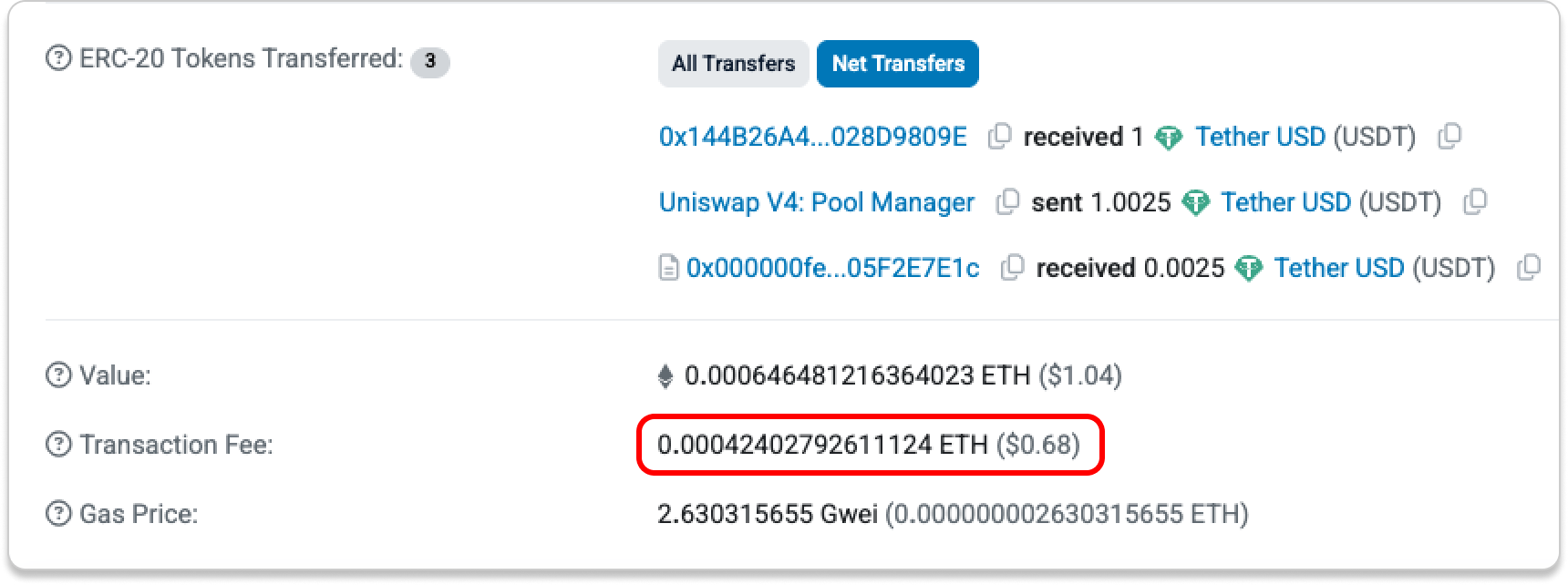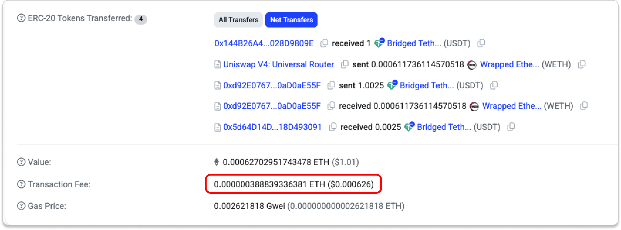 Let’s take a look at the transaction fees from the swap tests above: