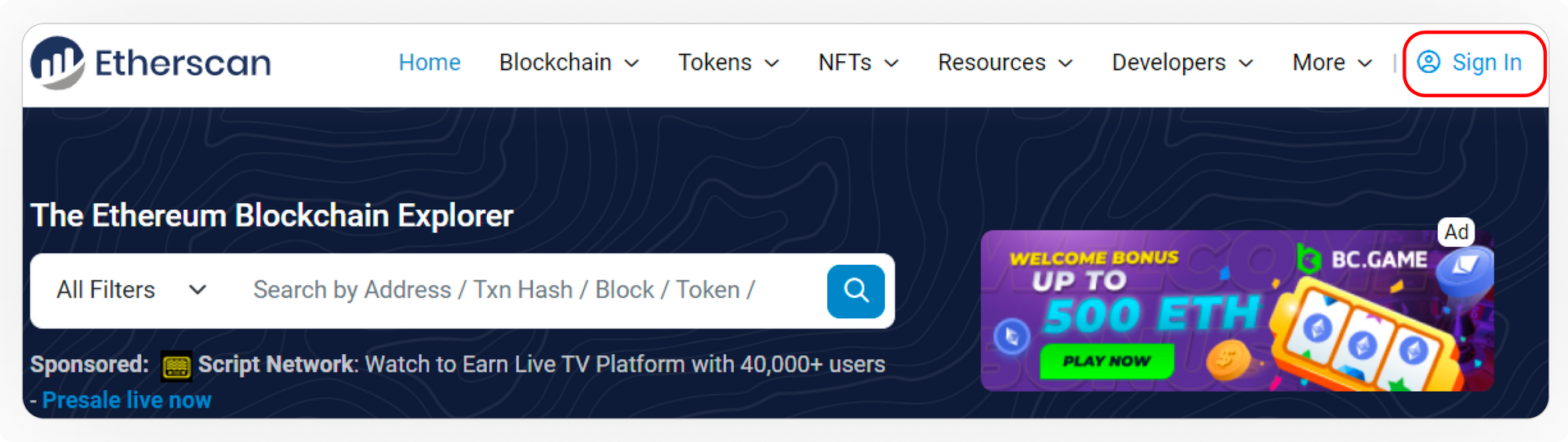 Log In to Etherscan