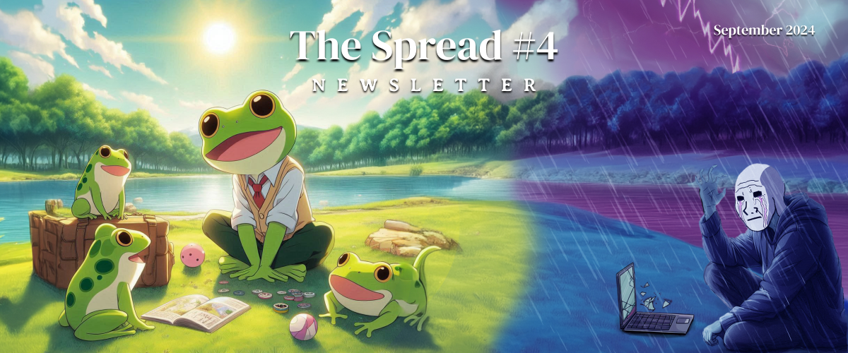Little has changed from the past couple months. The market is still stuck between narratives driven by ETFs, rate cuts and regulatory uncertainty related to US presidential elections. Meanwhile, market participants are fatigued from new token saturation on top of airdrop farming programs and extractive meme ponzis which have lost their novelty.