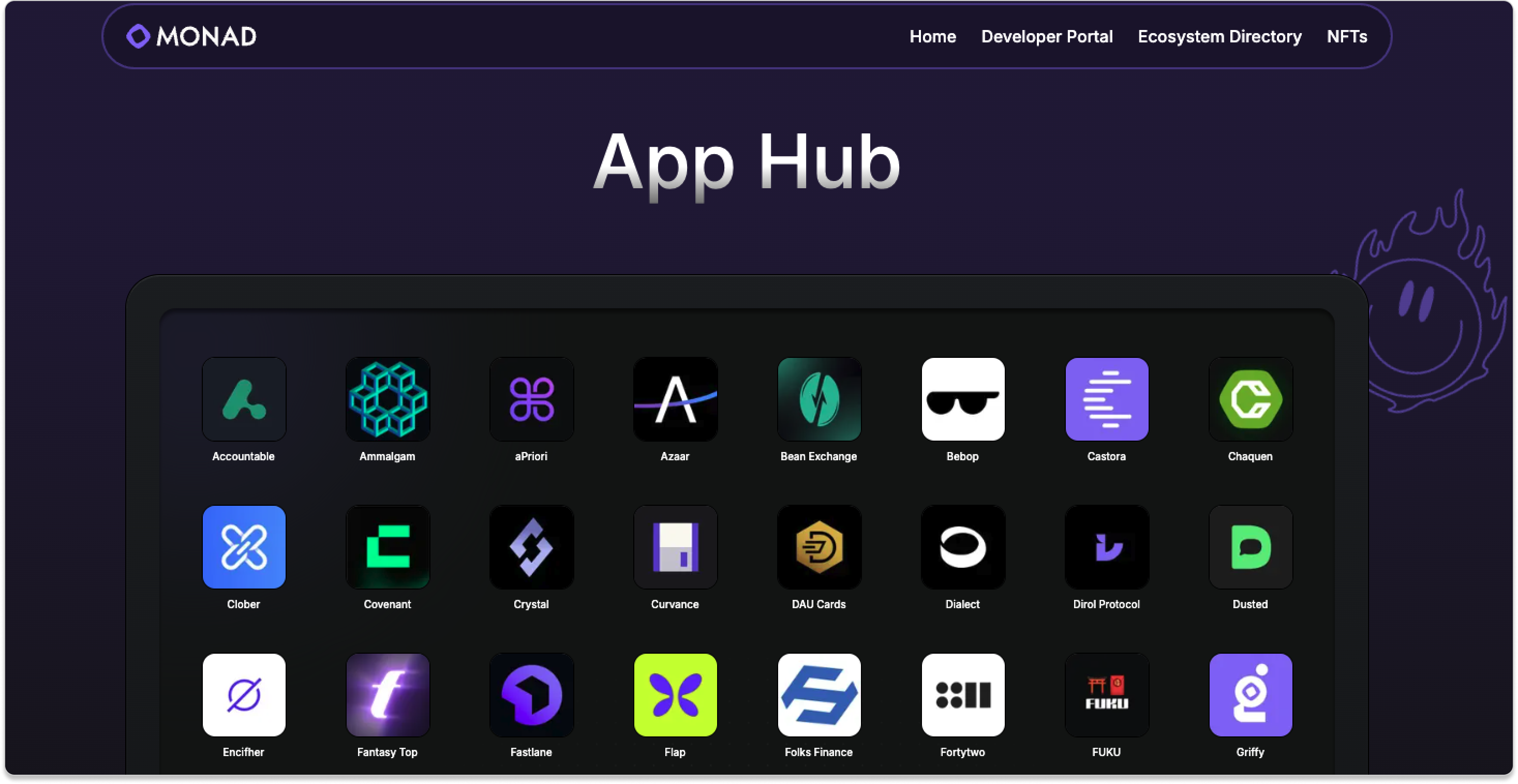 - Explore dApps: Engage with decentralized applications available on the testnet to experience Monad's capabilities. Find a list of featured apps in https://testnet.monad.xyz/