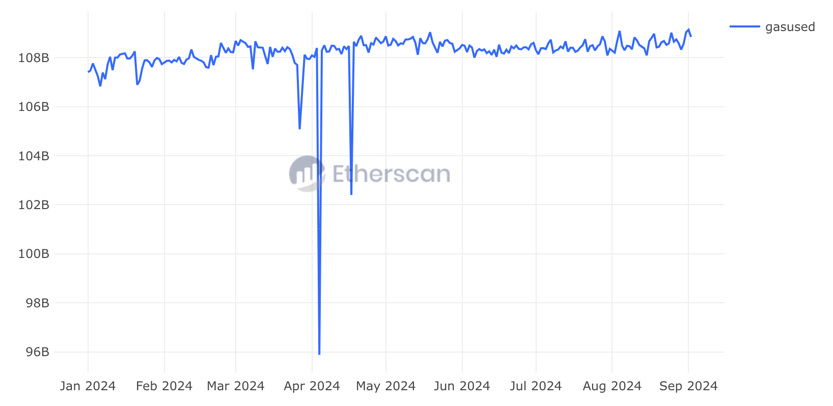 Since gas prices generally follow demand, one might assume a drop in demand for Ethereum's block space. However, daily transaction counts remain within the same range as in January 2024, when gas prices were more than five times higher. Additionally, the daily gas used chart shows no downtrend; in fact, September 1st recorded the highest daily gas usage in 2024.