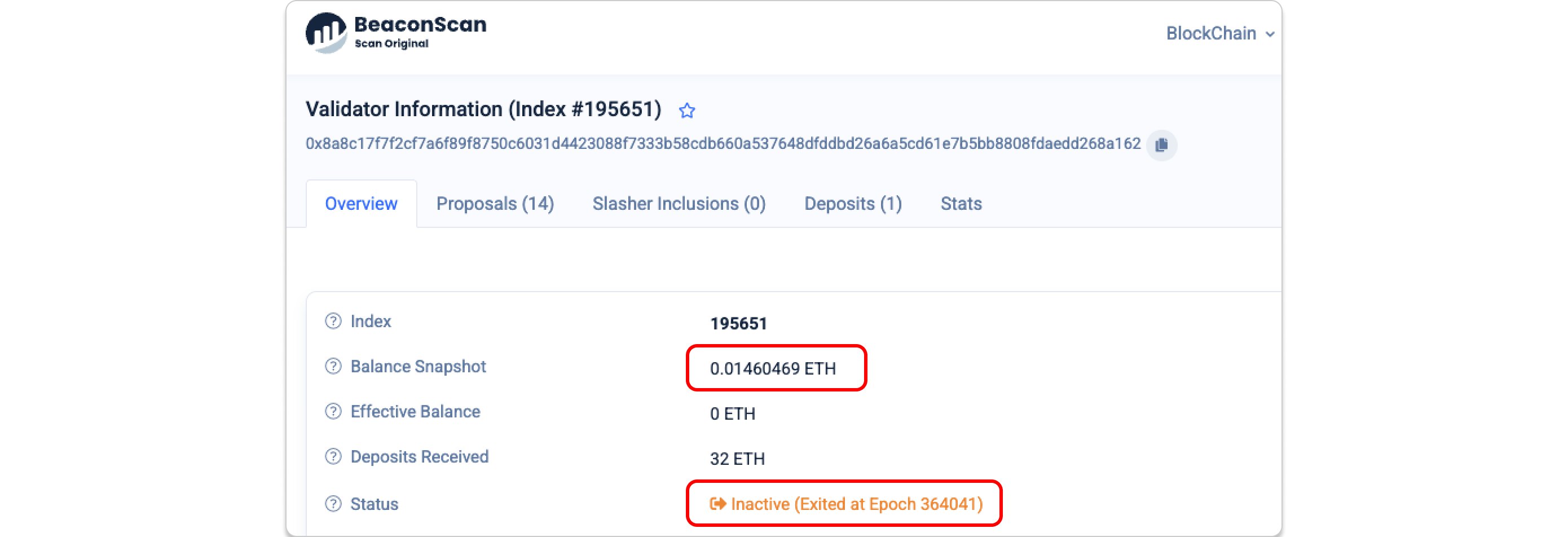 - This is the validator key whose balance is being withdrawn. The screenshot below shows its balance dropped to 0 after the exit