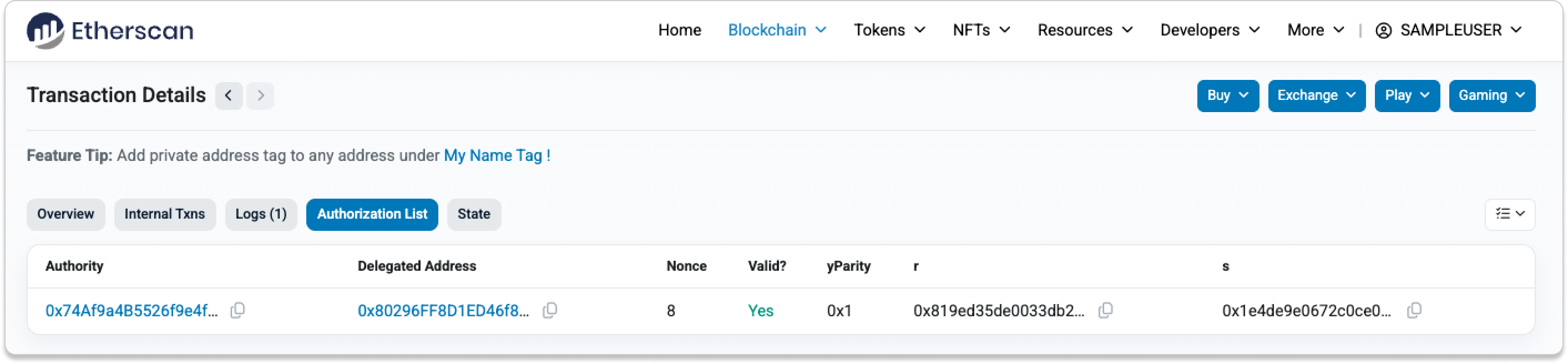 - yParity, r, s: These are components of cryptographic signature that are used to verify the EOA's consent to delegate execution