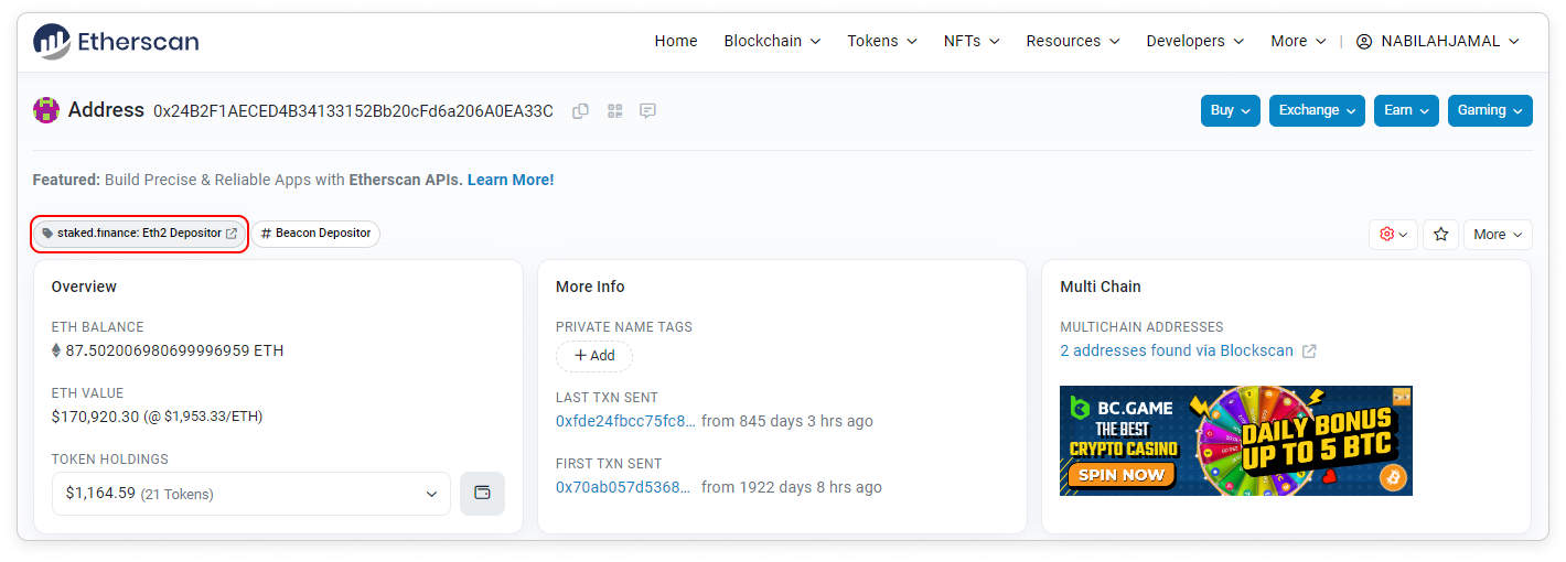 In determining whether to add a Name Tag, Etherscan curators evaluate the owner's interest in displaying their address publicly or whether the address is of public interest. Etherscan will only display Name Tags for individuals when they have publicly declared their ownership of an address.
