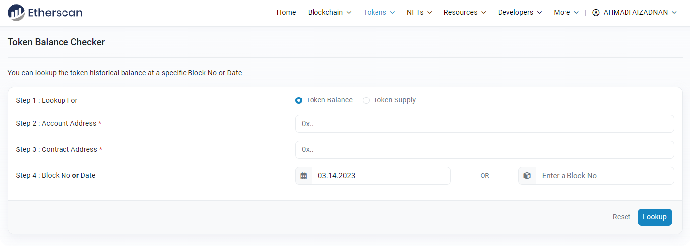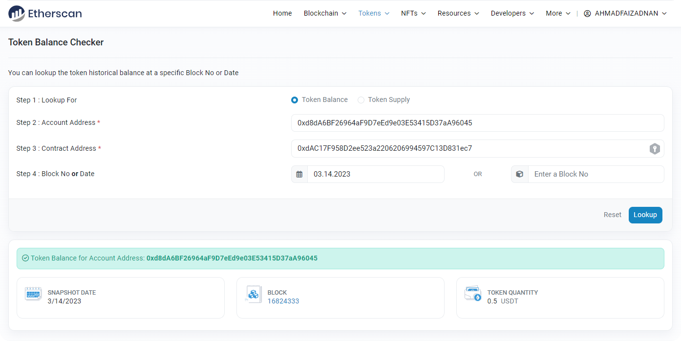 The Token Balance Checker on Etherscan is a flexible tool that allows users to look up the historical: