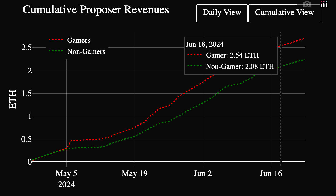 Specialized builders can order transactions within a block, constructing maximally profitable blocks that extract value from users' onchain interactions. A recent finding by EF researcher Toni Wahrstätter revealed that builders who use MEV-Boost earn a higher APY compared to those who don't.