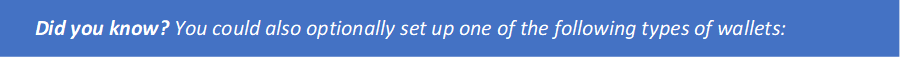 · Mobile wallet: you can opt to have a mobile wallet installed on your phone