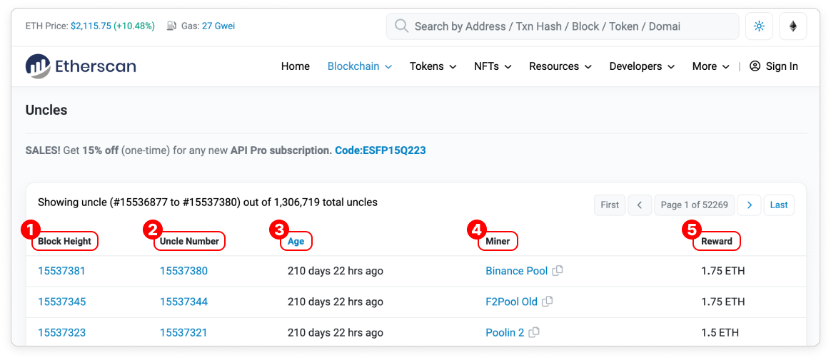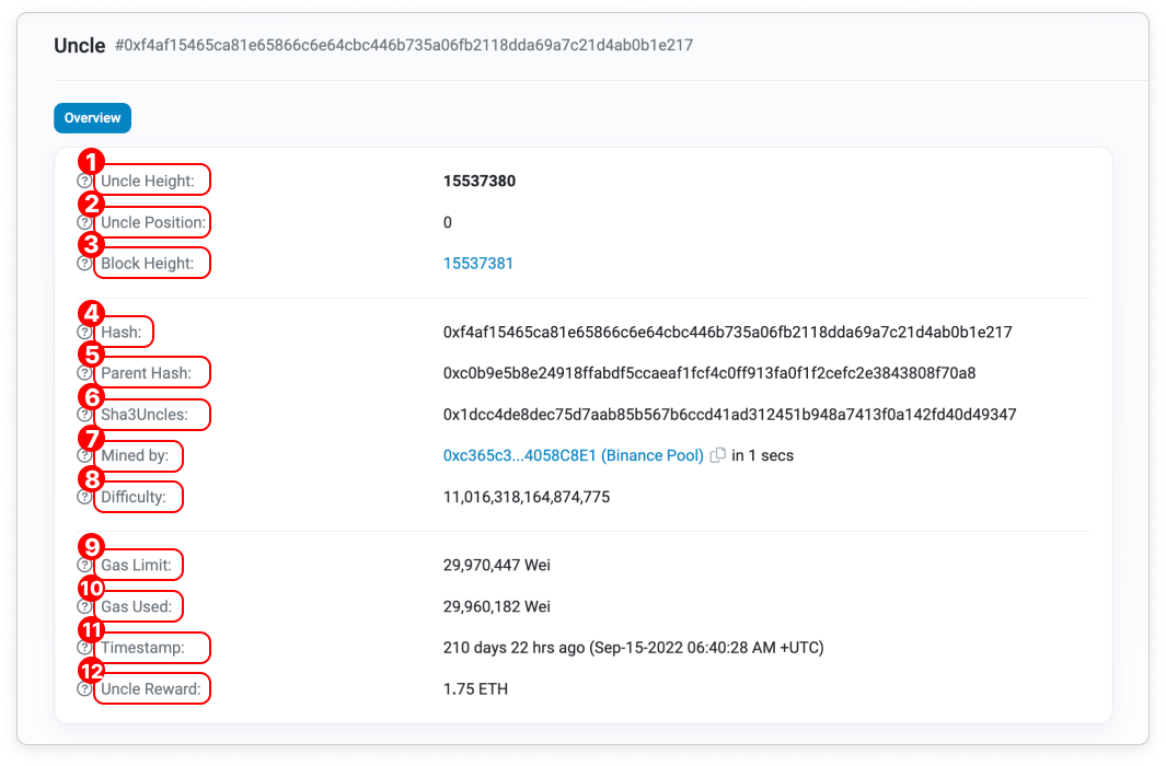 - Uncle Height: Block height where the uncle block is found.