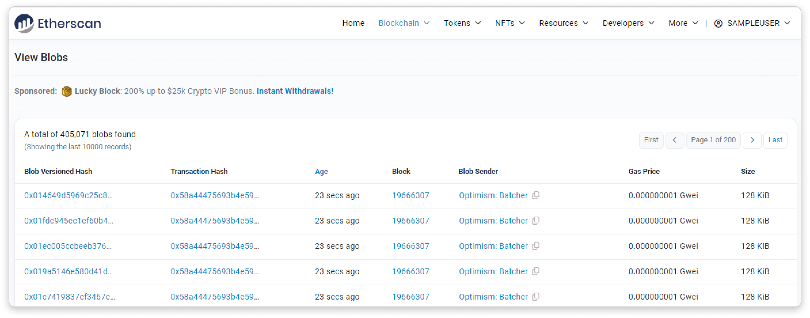 - Each blob transaction can include a maximum of 6 blobs (example)
