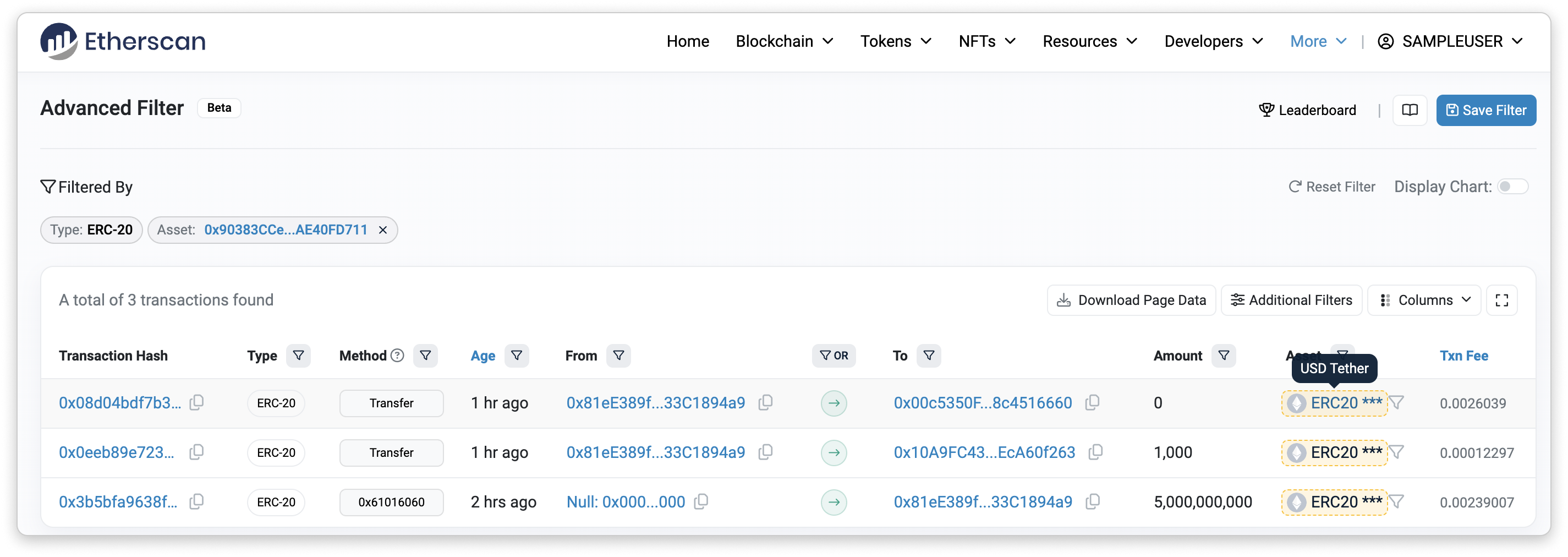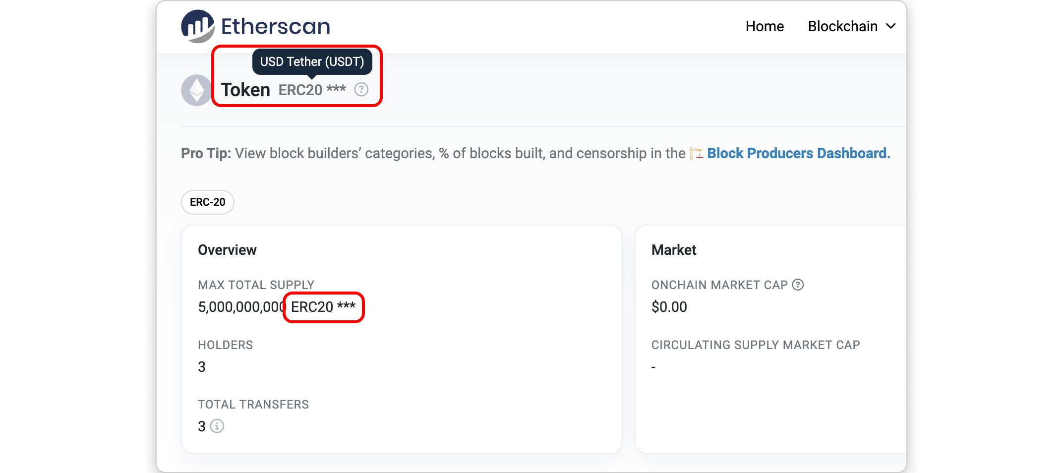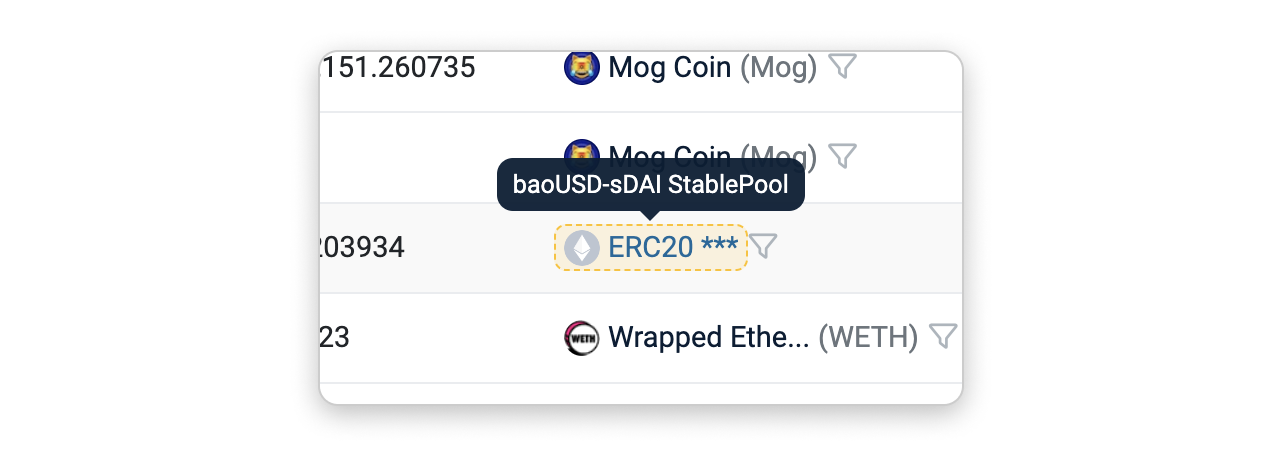 To combat address poisoning attacks and prevent spoofed tokens from deceiving users, Team Etherscan uses heuristics to mask certain tokens with unknown reputation as ERC20 *** on {{explorer}}: