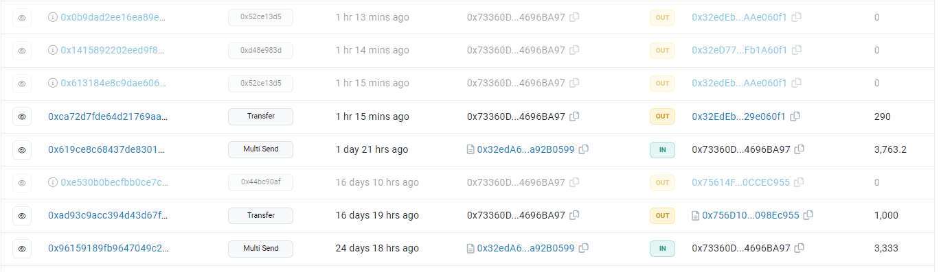 - On Etherscan, these transfers are muted and marked with a grey warning icon.